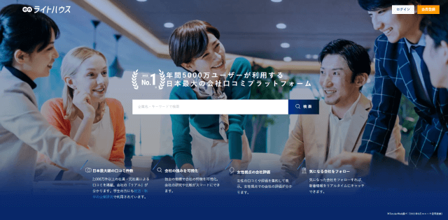 ライトハウスは年間5,000万人ものユーザーが利用しているサイトであり、多くの口コミが掲載されているので、第三者視点で企業への理解を深めることが可能です。