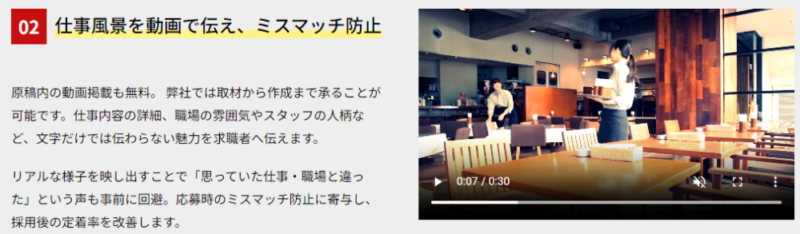 - 採用サイトを作成する必要がなく、求人票作成や画像・動画掲載などを代行してもらえる点