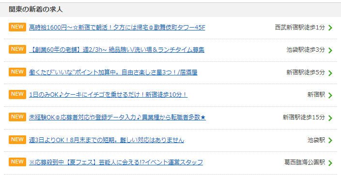 例えば、自社が新宿区にある場合、求職者が「新宿区」でエリア検索した画面において、自社求人が上位表示されます。